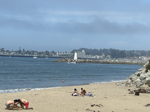 I love Black's Beach; it is one of my favorite places in Santa Cruz, mainly because I come here every day. I love walking in the water down to the other side where the crow's nest is. It is a nice little walk. During the off season it is just the locals and is so peaceful and quiet. I always see seals floating around and I have seen lots of dolphins here on a quiet day. Twin Lakes is what the other side is called; you will see a sign here for Twin Lakes as well, but it is known as Black's Beach. Next time you're in the area, come watch the sunrise or sunset, they have a nice bench located right above the beach to take it all in. You can also see Walton Lighthouse from here as well. Great beach!