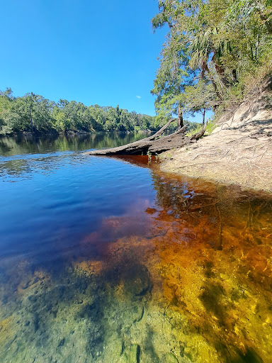 Read moreBeautiful spring off of the Suwannee River. $5 entry fee per car to get in (card only). There is a dock to dive off of into the deeper part of the springs, as well as more shallow areas with stairs to easily access that area. The spring runs out to the river in a small, rocky area that is like a small creek. The water is cold, clear and the most stunning blue over the spring head. There is a paved road also leading to a boat ramp that you can launch a vessel from or paddle out from. The only downside are that there are a lot of bugs if you're not in the water, so would...