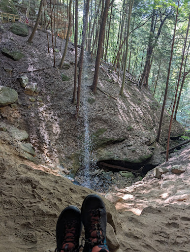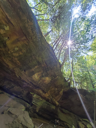 If your intended destination from here is to head to Whispering cave then this is a moderately easy trail with a distance less then a mile to the cave. This is not a looping trail so once you reach the cave you’ll head back the way you came. As with all the scenic destinations around the Hocking Hill area be prepared to for changes in elevation, traversing over large rocks in some sections, exposed roots, mud/water, and various types of wet and dry conditions that might cause you to lose your footing and occasionally you might come across a downed tree. I highly suggest wearing a decent pair of hiking boots that offer ankle support. This trail also Intersects with trails to the Old Man Cave area...