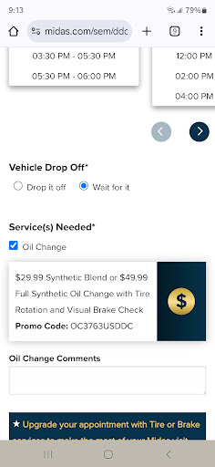 Read moreWent in for an oil change which went fine, the service was quick. My complaint is that the lift used on my car damaged the moulding underneath both doors causing the fenders to dislodge from the bolts in the wheel wells. Whenever I open either door, the door pinches the fender between the wheel and the door and pushes it in until it springs back. When I confronted the employees about the issue the following weekend they just denied it saying it was impossible but they believe me (?). I noticed the problem immediately after the service was over but was unable to confront them at the time because I had to visit my grandfather in the hospital and was short on time. This was the first and last time I will ever go to a Midas. I contacted the corporate office and I am waiting for a response. If the issue gets resolved I will update this review and continue my business with Midas but until then,...