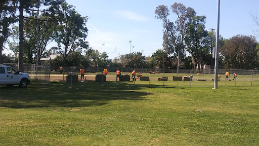 Quaint little park with a soccer field a gym area for the kids including swings a basketball court and a recreation building. There's also room in the grassy fields to lay down or play frisbee. It's only a block away from the long beach Police department so it is quite safe. Great place to have lunch or a family outing in Long Beach and not have to worry about something bad happening. It's right next to the high school so we get students over here, people walking their dogs, and kids playing in their soccer league, as well as parents bring in their toddlers over to play in the jungle...