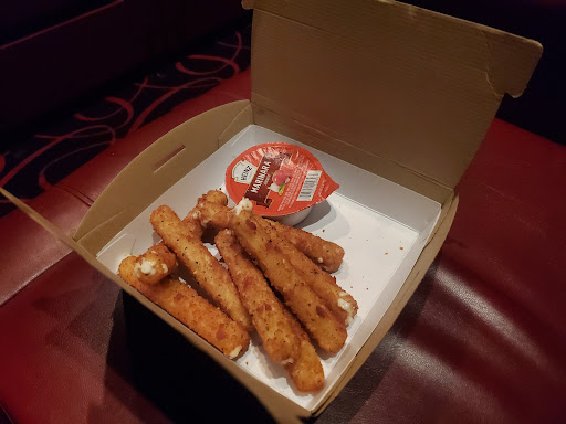 AMC Marina Pacifica 12 has recliner chairs which feel so good. Not all AMCs have recliner chairs. Every time I visit, AMC is already clean or someone is cleaning. This is not a Dine-In AMC. When I make a rare snack purchase, I buy the Mozarella Sticks: they tasted a lot better before the cancellation and the reinstating of them: the most recent answer to my inquiry about them during their removal concerned seeking a company/vendor change.