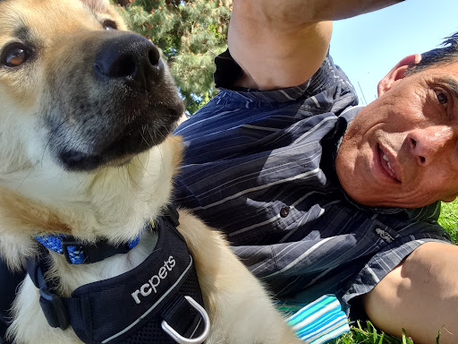 Me lying on the grass trying to do a selfish with my 5 month, can't-stay-still Shep mix. Another gorgeous Long Beach park with its own unique vibe, a way different vibe than any other park. Caters well to young families & litte ones, dog walkers, people spending quality time alone- reading a book-on the lap top or wasting time texting away like me. The Lagoon water is best for baby & juniors to enjoy grass-side and sand-side, sunbathers & chat groups, and picnic parties &; rec activities. It gets really, I mean really, very crowded here and parking is tight but the lucious grass stretch, so inviting makes for an ideal place to just stop & lay back. Colorado Lagoon borders the marina waters and another park and is alongside a heavily traveled road leading to the marina, the beaches and Belmont Shore area. It's also great for just driving along cruising, sight seeing and even a pit-stop to take a break, power nap, walk, talk, chill or a place to eat your take-out. It's a great area for group parties and activities too. Although it's nice, it can get crowded, traffic can be heavy and parking is a commodity but the beautiful view; awesome weather, and loving life vibe is what attracts people here. I took a car ride just to take the long way home but ended up stopping, parking & getting out to sit under a shady tree and catch up on messages. Its was a post card weather day-couldn't pass it up. It's times like this that I'm grateful to enjoy the great lifestyle that Long Beach has to offer. Colorado Lagoon is a beautiful example of one of the many places to enjoy-the stuff that makes...