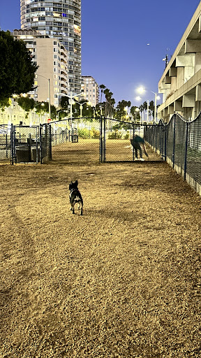 Saddest dog park ever in greatest location ever. This grass-less dog park is surrounded by beauty...the beach, downtown, and entertainment dist., oh, and the Marina. On my way to this spot, I noticed people walking dogs everywhere but drove down the hill to this smallish jail yard-looking enclosure directly underneath and 2 story concrete parking structure expecting something nice for this area.....nope However, keep in mind that the homeless situation makes public nice areas, especially downtown LBC, very risky and difficult to manage. Stick to every area around here...the beach walking path is not far... but skip this prison...