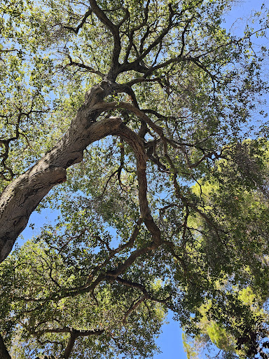 This is a nice shady park between the tennis courts and the frontage road along Foothill Expressway. It is best "sized" for smaller dogs, as the fenced in park is very small. There is a large "digging" pit full of tanbark. There are lots of trees, mostly Oak, Eucalyptus and some type of pine trees (which look as though they are ready to fall over). Wearing a hat is suggested for items falling from the trees. The park has two benches and two picnic tables. There are also bags and trash can to clean up...