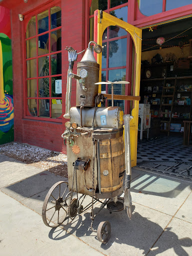 Ok so this 1 is only open 3 days a week compared to the Echo park is open normal 5 days I think. This 1 the theme is 1870s (I guess thats why there's no AC) I really spent too much money there but when else are you gonna find a time travel mart? Some items are similar to the Echo park location. But this 1 has real tar from the LA Brea Tar Pits. Also they have an incubator to hatch dinosaur 🦕 eggs. Buying stuff there supports thier free tutoring for kids. I bought time travel sickness 💊 pills. Last time at Echo park I bought a dinosaur egg...