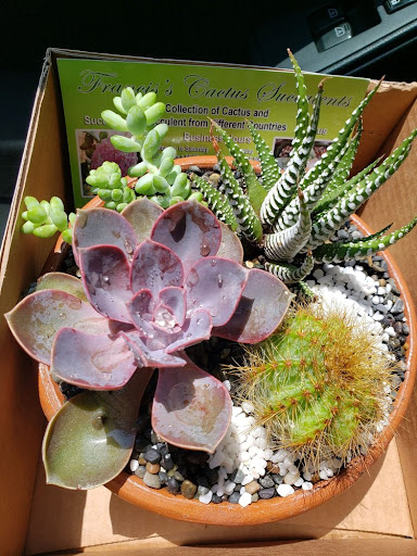 Francis greeted me with a warm smile and demeanor. She was so sweet!! I almost wanted to give her a hug lol. I explained to her that I had a budget and wanted succulents. She quickly got to work on it. She asked me to pick from several plants but didn't overwhelm me. I think she ended up having fun working on it! I saw her burst into this creative mode, and it was beautiful to witness! An artist at work, and in her zone!