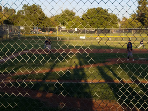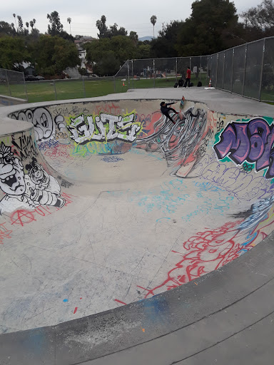 Hss a cool skateboard park. Lots of grass. No separate dog park. But plenty of dog walking area. Enough trees for shade zones. Work out equipment. Kids play area with lots to climb on. Fenced baseball/softball diamond with a few bleachers. Easy street parking. A few homeless folks but they leave u alone. Liquor store across street for drinks + snacks. Big-time COYOTES zone at night! Don't walk a small dog around here after 10pm due to many hungry coyotes that may snatch it up!! Seriously. Same for the neighborhoods around the park. Nice mellow daytime...