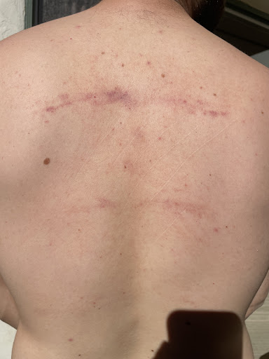 First, the masseuse was using his elbow for about 80% of the massage, digging into my back and SPINE. I asked him multiple times to go lighter, but he wouldnât. I ended up gritting my teeth and working through the pain. Today, I have dark marks and bruises on my back (there is nothing else I did between yesterday and today that could have caused this).