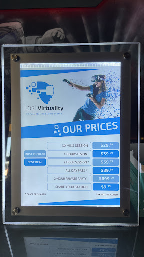 Read moreI’ve come by here a few times. First time I was just curious about VR and decided to try It out alone and wow it was such a cool experience. Not just using VR alone but the whole process of booking my time and the interactions with employees. They were so attentive and really made my solo experience worthwhile. They also took their time in showing me how to play and they had so many games to choose from. Because of that, I came back a few times since then. I’ve also brought friends and family. They even have games for kids so it can really be a great outing for a family without breaking the bank. A friend of mine hired them for an event at their home and the Los Virtuality team brought the whole VR set up to the event! I didn’t even know that was possible! But it was a huge hit at their son’s birthday party so I recommend them for events too! All in all, VR is a ton of fun and this business really went above and beyond for me and all the people I‘ve brought with me. At that time of my first try, they had just opened their business and I was surprised at how new and modern everything was! Since then they’ve grown and have more spaces, games and services available. Will be coming back during...