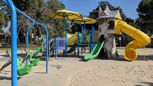 Really fun equipment at the playground, but some graffiti vandalism, dirty bathrooms, and gopher hole filled sports fields. Overall my kids enjoy it, but as a mom, I see the hazards more than they do. Has all access swings for children with special needs (see photos), but lots of the other equipment is designed with a ninja warrior/parkour style and wouldn't be for all access children♿. There's a smaller gated playground as well for little ones that's nicely shaded by very tall trees in the morning. For adults and older kids/teens there's basketball & tennis courts, outdoor workout area, baseball field, and several other available fields to accommodate sports. In summer time there's a pool with a water slide and splash pad, but it is currently empty since it's more out of season. May include fees to use the pool area, but I don't know since it's closed right now (I took pictures of it a couple weeks ago before it...