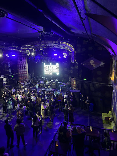 It has two nice anterooms, one for food and a small bar for libations, and the main theater is spacious, and allows for a fair amount of people both on the slopped floor, a remnant of its life as a movie theater, and upstairs on the "balcony". A balcony that was half occupied by VIP table sections roped off from the hoi polloi that might want a better view of the stage. You have to pay more to enjoy your eyes from here! I'd include ears but as I had previously mentioned, speakers. UNLESS, perhaps if I had paid more than the 25 dollar door fee, and had opted for an upgraded ticket, I'd have been able to enjoy sound binaurally?