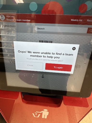 I made my wife promise I never have to go again to at least this Target store. Then, we bought a blanket, and my wife so so much wanted matching pillowcases. I asked if we could try another Target store. We did, at the Glendale Galleria, not so convenient, with no staff at all, no one to help. We eventually found what we were looking for. Used the self-check-out again - were asked if we wanted to buy a bag. We did. Sadly, they only had small bags at self-check-out. We asked the attendant - and the response was: „sorry, you should have used a cashier’s desk“. So we paid for a bag, threw it away, and left, vowed to never return to Target.