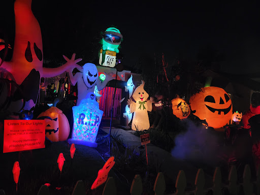 Read moreVery spooky and kid friendly! Light show, fog, interactive props and music 7:00,8:00,9:00pm ! You can stomp on the pads out in front and it moves the figures, but don’t let kids stomp all on them cause the guy says they can break. It’s such a cool house to see from the street as you drive by too! He posts his venmo out front too, great...