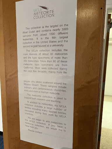 Read moreWe were fortunate to talk with the curator. He was very enthusiastic and told us stories about the origins and travels of the meteorite samples. The collection is a portion of those available for research. While there a group of visiting elementary students came through. They were excited to see the displays and had lots of questions answered. This is a rare gem at UCLA and an important...