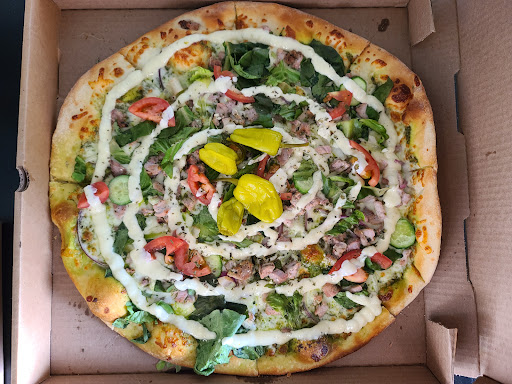 Read moreThe BEST pizza around. This pizza is different from traditional pizza so if that's what you're looking for you're going to have to specify that when you place your order. I HIGHLY recommend the large "Viking" pizza; it's our fave! In fairness we haven't had many of their other pizzas cause we're so in love with the "Viking" but we've had some of the other offerings on their menu and everything we tried was delicious. The "Viking" has cheese, light marinara, kabob, tomatoes, romaine, onions, feta and a light cream sauce on top of a hand tossed crust. It's a total party in your mouth! SO good!! Note: I recommend the large because the smaller size crusts are good but the large seems to have a better texture (imo). I also highly recommend their hummus. Also very different from the norm. My family and I love this place so much that we would go here at least three or four times per month pre-covid. Now we order take out or delivery from them a few times a month to support them. It would be such a loss if we lost this little gem. Try this place, you...