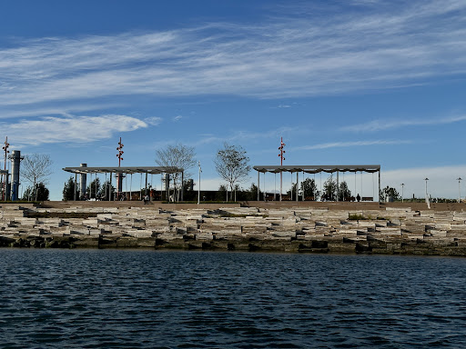 This park and community center is beautiful. Right in the waterfront with landscaped walkways, swings to relax while overlooking the water, q beautiful playground with music, collydescope, slides and climbers, many searching and picnic tables, and seating viewing the waterfront or the oncoming trains on the inland side, including picnic table on a pier and for those with a boat can dock to enjoy. Such a relaxing place to bring Hildreth or adults to relax. Olease help keep it...