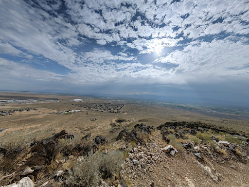 When I moved here 5 years ago, I expected a hike up "the hill" would be one of the first things we'd do. Better later than never, I guess. Firstly, I suggest going to the Los Lunas village website and print off the grid map to take with you in case you need any assistance. We took the overlook trail from the east side, heading south first and winding clockwise. The first half (?) requires slogging through sand and is the toughest part, by far. Once you get up on the windblown south side, it's easier. If you're worried about rattlers, the trail is pretty clear, you won't be stepping over big rocks or logs or anything that'd conceal 'em, just use usual snake territory precautions and look ahead. We're in decent shape for 60ish, took us about 2.5 hours...