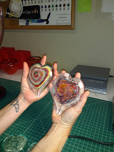 So many reasons why this place is awesome. Set up everything with Tiffany and she showed me samples of everything to get an idea. After some wild ideas I had, she helped me tone it down to understand the properties of what the glass can and cannot do. John Stokes worked with me on Spirit Pieces for one of my dogs. He was so respectful, knowledgable and just all around awesome. Because of the hot shop they work in, the shop walls are open. He put a cover over the ashes so the wind wouldn't blow them away. I didn't think about that at the time but just that small touch was thought out in a away that I didn't-- in grief. I got two hearts done. He worked with me from start to finish and let me in on the creative process. Each heart is completely different which attests to both his technique as well as what the glass just "does" in the fire. Just go with it and it becomes more awesome. I was able to choose colors etc. and he was nice enough to tell me what colors look like after. Meaning in the jar vs in the fire. I appreciated that because once it goes in the fire it's too late. You really dont know what the fire will do. You just trust. And let crafter do what they know how to do. That's the beauty of it. Several days later once cooled the piece actually comes out better than what you first see. All around they're just cool peeps! Rave, rave, rave!!! I'll be...
