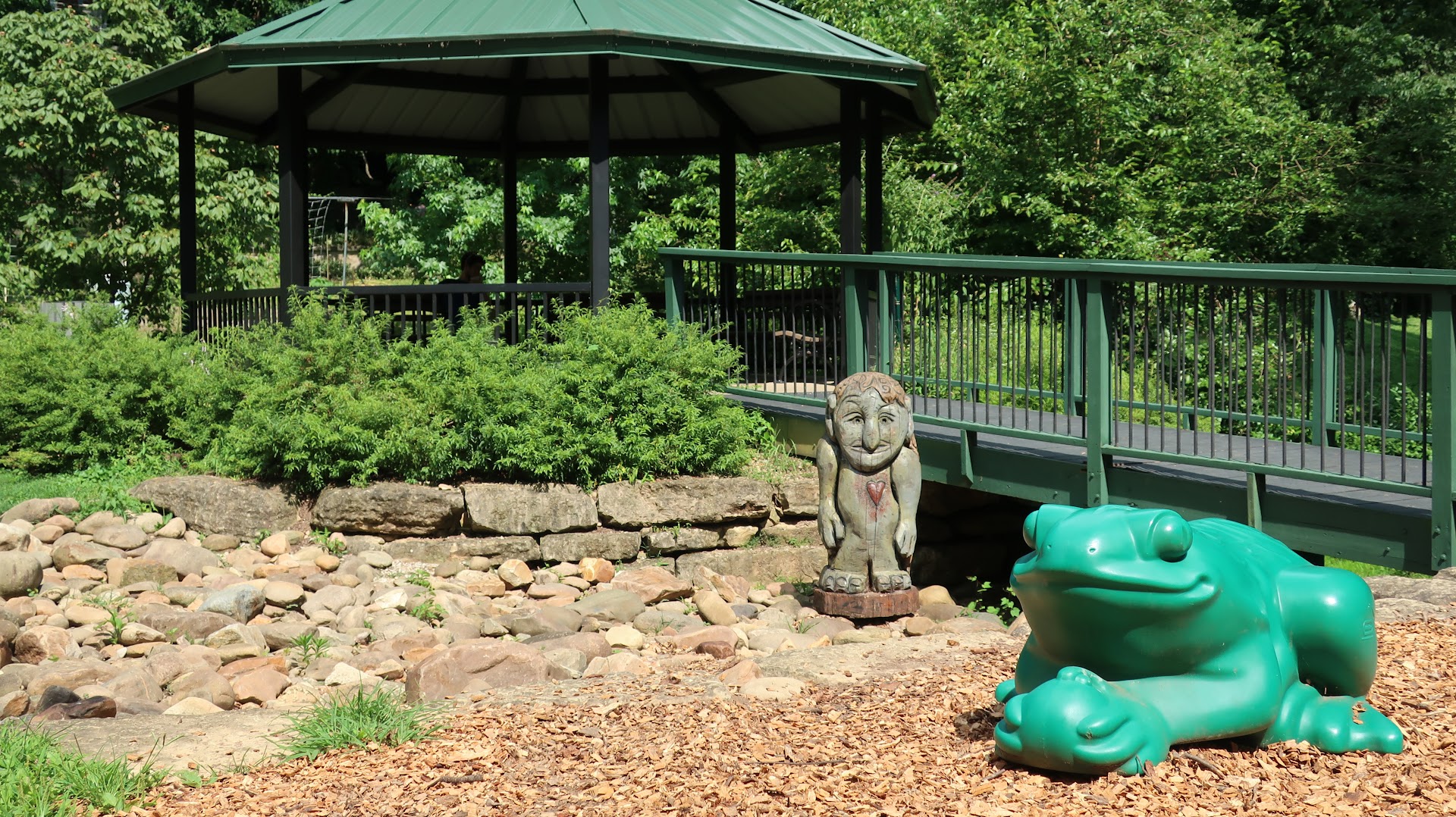 Read moreA very small secluded, quiet, clean park, lots of places to sit...table, gazebo, porch swings, small jungle gym for kids, and 2 kids swings, we took a picnic lunch... this place is a neighborhood park, funded and taken care of by the neighborhood, has a few library box of books, several interesting artistic sculptures of wood and metal, the entrance is literally between 2 houses, look close, parking is...