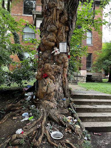 We came in the area to experience Old Louisville and found the tree at the corner of the park. It was cool to get out and see it and see the offerings other visitors had left. It's twisty and tangly and beautiful.