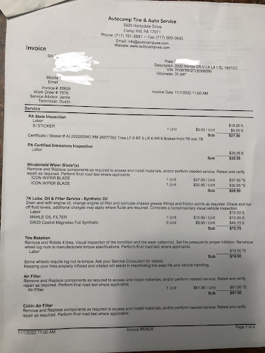 Read moreAutoCamp has just secured a repeat customer! My car had a flat tire and AAA showed them as one of the closest garages to take our vehicle. From start to finish, they were a breath of fresh air. Having never been there before and discovering my flat tire late Sunday evening, I sent a message through their website letting them know my car had been dropped off and that I didn’t have an appointment. I planned to call in the morning to officially schedule an appointment, but there was no need as Jamie called me first thing saying she got my message and had already taken a look at my car. Jamie was an absolute delight to talk to, so friendly and kind. AutoCamp had my tire repaired within the day and for such a fair and reasonable price. I look forward to bringing my vehicles here...