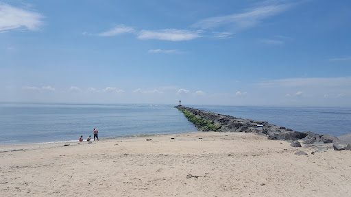 Love that you can drive right up. Pet friendly. First look it beautiful. Open sky and blue water, hot white sand and beautiful rock structure but then as you get closer to the water the sand becomes very pebbley and even worse there was dead horseshoe crabs everywhere. There was dozens of them from high tide and as we watched the water roll in and out (we were there around 2pm) there must have been another 2 dozen that washed up. Its was extremely hot with no breeze so we wanted to put our toes in the water and there was just random horseshoe crab body parts everywhere. Being that we were on vacation and made plans to go to this beach we decide to make the best of it. We put down our beach towels and sat down. Within minutes i was being bite by some sort of insect that was literally leaving drops of blood dripping down my leg. Needless to say we didnt stay long. Beautiful but Very...