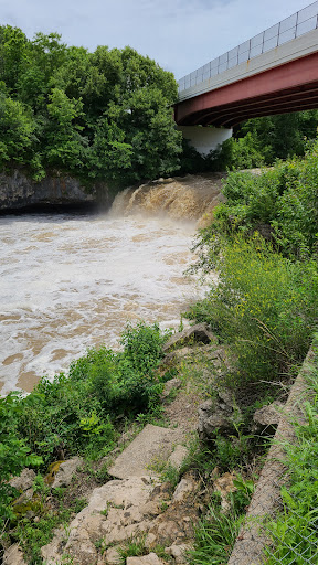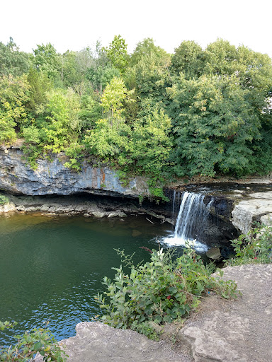 It's a nice natural waterfall that's pretty scenic considering it's directly under an overpass. When we arrived there were teens swimming in the water beneath the waterfall and no signs telling anyone not to swim. We were fine with them swimming and the water is fairly deep in the area. There is a paved pathway leading from a gravel parking area down to the waterfall. I recommend having small children within your grasp. There's no railing or fence near the falls....