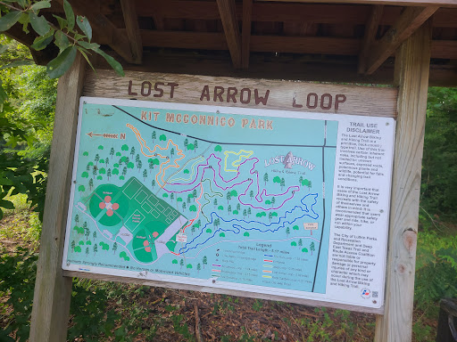 This review is for the hiking trails. The rest of the park is beautiful, and my family loves the covered picnic pavilions. Soccer and baseball fields dominate this park. Its a family favorite. The trails, however, are MY FAVORITE. Kit McConnico Park is my favorite park for hiking. I love the single-track dirt trails. It's almost completely in the shade. Easy to follow trail markers. Hikers can easily hit a short loop or extend their hike for miles with the loop set up. Today, I did the orange loop and portions of the purple loop. Totaling 1.72 miles. Trail is mostly flat terrain with mild inclines/declines. Trail does get a tad sloppy after storms but, in my opinion, is still hikeable. Some mosquitos year round, and during horsefly season, they love this park. Bug repellent suggested. Very few other people on trail. Easy parking at the trail head. Park closes at 10 pm, so sadly, no night hiking at this park. Leashed dogs welcome, bring poop bags and pack out with you, there are no trash...