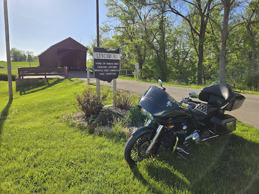 The 120-foot Lynchburg Covered Bridge spans the East Fork of the Little Miami River. The Bridge is located on the edge of Lynchburg and is geographically located, half in Clinton County and half in Highland County. The Lynchburg Covered Bridge has a Long Truss and was built in 1870. The Bridge is bypased and gated at both portals so no pedestrians can walk across the Bridge. It is possible that the gating of the portals are to prevent vandals from decorating the interior of the Bridge with graffitti. It is unfortunate in that we cannot enjoy the historic Bridge. The Bridge site has a park area that is well-maintained. There is a children's playground in the area. Access to the creek bed is difficult but not really necessary because the park area allows for complete observation of the exterior...