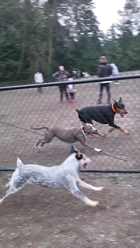 I wanted to update my review and it's been a long time. I miss this group and this park so much you have no idea. I wrote this 3 years ago and I've been to a lot of dog parks since. None has had such good parents and such a great group of dogs. I miss them so much I had my first experience about 6 weeks ago - it was taking my new rescue Blue Heeler pup of 24 hours to get socialized. It is the perfect park for socializing a dog because it is quiet enough most of the time they can go in to the large dog area with just a few dogs. And if you need to (like mine does still occasionally) put your dog in the small dog area that runs along side it. Most of the dogs that visit when we do *4-6pm daily are large dogs - Great Danes - Pit Bulls - German Shepherds - Doberman Pinschers - Newfoundland - Samoyed -Bull Mastiffs - Huskys - etc... I have only seen a very few small dogs - a few doxies and small bull dogs - corgis but almost all play with the big dogs. My Blue Heller is usually the small guy (but the fastest and most fearless - he sees the big dogs as cattle and tries to herd them).