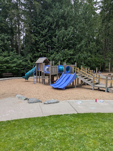 Read moreThis park is fairly small, but it's nice, especially in the summer. It is surrounded by very tall trees, so it is often shady and a little cooler in the summertime. The playground is fine and has some neat features for kids both younger and older. It also has a zipline swing, which is fun. There is a small hiking trail through some woods and in the back of the park, near the high school, there is a raised, flat grassy area large enough to throw a frisbee and have some fun running around.