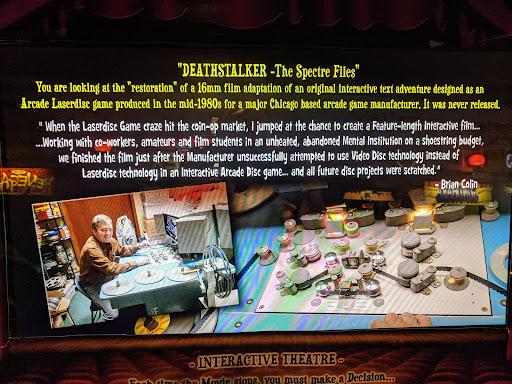 There are many gems to be found here, however. In my opinion, the most epic game they have that you must play is The Spectre Files: Deathstalker. This game is a perfect example of how the gaming industry has come full circle. It is a full length interactive movie that was shot in the mid 80's, but was never completed and released until crew from the Galloping ghost Arcade actually wrote the software and put it into their very own cabinet for the arcade. It is very impressive how they pulled a lost game from the 80s back from the grave. And this game is CHOCK FULL of B-Movie horror, cheap thrills and laughable Halloween costumes that are sure to hook you the first time you play and try to survive the haunted house. I could easily pay the $20 just to sit in front of this game for hours until I discovered all the correct movie...