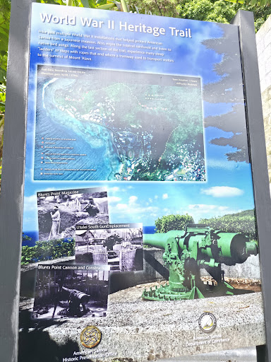 Read moreThe first part of this hike is pretty easy and well maintained; there are two 6 inch guns, the first of which has been well restored by a local Eagle Scout. Continuing along the trail to where it connects to the WW2 Heritage Trail the trail becomes less well maintained, and is slippery and steep in places. There are trees down across the trail in several places. At one point there are ropes because the terrain is very steep; gloves would have been a welcome addition. The remains of the aerial tramway are near the end...