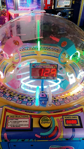 You get 4 tokens per dollar, and the machines are 1, 2, and 4 tokens to play. There are both ticket games (always a slew of cool prizes to be had!) along with normal arcade video games. Highly recommend the Wheel of Fortune game. They also have an awesome new Jurassic Park shooter game, 2 pad DDR, skeeball, hoops, air hockey and lots of others.