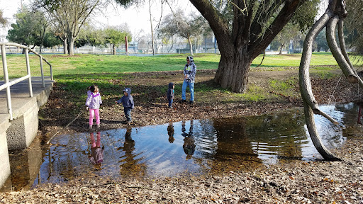 Beautiful park. Has gravel and paved trails to walk or jog. Lots of shade to relax in. Has a medium size pond and canals, not always filled since CA is in a drought. Has volleyball sand pits, baseball fields, enough space to play soccer when fields aren't being used by baseball teams. Has several bathrooms. Has a playground on one side of park. Two/three areas to host small -medium sized parties; only one area has a roof. Also has a small theater which has had small local concerts...