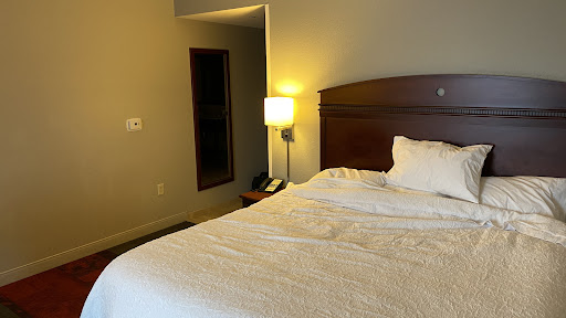 Read moreThis may be the worst Hampton Inn we have ever stayed at. We booked a king room and we got a small bizarrely laid-out, dark dingy room towards the end of the hall. We felt so light deprived. It was quite depressing. The bathroom fan didn't work. There was a small broken refrigerator (door to the cabinet with the fridge was off the hinges), no microwave and a small coffee maker behind the bathroom door in a very small nook. You can only make coffee in the bathroom with the bathroom door closed. ||The Bathroom did not have a bathtube, a shower, with doors that did not slide easily||||We looked into a few other rooms that house keeping was cleaning and the other rooms looked more normal in size and more well lit. After the fact we realized we should have complained immediately about our room. We went out to dinner one night came back and our room keys no longer worked (infact they would no work to even get into the hotel through the back entrance). It took 20 minutes for the hotel personnel to restore access to our rooms , no apology. When we checked out and told the staff about our experience, all they said was ,"have a nice day". No apology or attempt to show sympathy. It really was the worse Hampton Inn we have ever experienced. We definitely felt like we did not get our moneys worth. Plenty of other places to stay near by, next time we are in town to see our daughter we will fore sure find another place. Very dissatisfied!!!||||We stayed 3 nights, in hindsight we should have demanded a newroom...