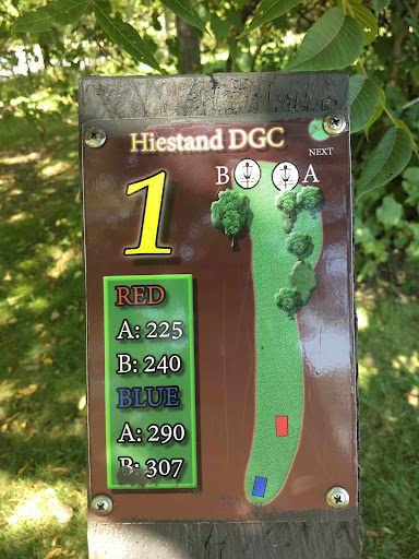 Read moreGreat course! Has two tee boxes at each basket. They are extra long and poured concrete. Course is 18 holes and in the woods so a good challenging course. There are 2 baskets at each of the 18 holes and many other optional holes to change baskets positions so the course changes occasionally I'm sure.The baskets are also color coded and the distance for each are on the information sign by tee boxes. Good time now in the spring to find discs thrown into the rough but keep your throws tight in the fairway come summer, looks like it will be difficult to retrieve your disc. I noticed a couple practice baskets near hole 1 by the two porta johns which is good for putting practice. Was clean and mostly debris free. There is a waste basket at each hole as well as 2 benches to take a load off if needed. Will definitely be returning to...