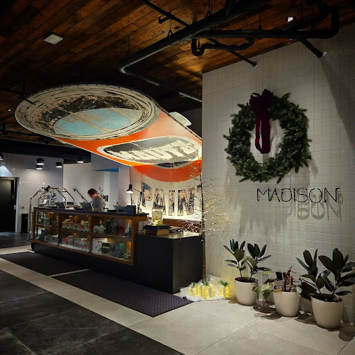 attractions: Arts + Literature Laboratory, McPike Park, B.B. Clarke Beach Park, Madison Skatepark, Broom Street Theater, James Madison Park, Orton Park, BB Clarke Beach, Goodman Skatepark, Law Park, restaurants: Palette Bar & Grill, Bos Mead Hall, Salvatore's Tomato Pies - Madison, Vintage Brewing Co. Capitol East, Baked Lab (by appt only), Cargo Coffee, Jacknife, ORIGIN Breads, I/O Arcade Bar, Madison Sourdough, local businesses: Galaxie High Rise Apartments, Burnie's Rock Shop, Barre District Madison, Jenie Gao Studio LLC, Meep Meepleton's World of Fun, Good Style Shop, Childrens Theater of Madison, Le Personal Chef, Purple Door Pilates, ARTS for ALL Wisconsin