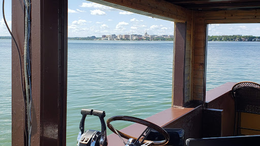 I was invited to attend a birthday party event on the Pontoon Porch. I'm so glad that I was invited. I have been aware of this party cruiser for awhile and am so excited that I had the chance to come aboard and party on it finally. It did not disappoint one bit. There were 30 of us on it and we all paid about 20 bucks to book it for the morning. We opted for a booze brunch cruise around Lake Monona for our event. We brought all the catered food and drinks (alcoholic and non) aboard. The pontoon does have a grill if you need it. I advise to skip glass bottles as you are out on the water and things can take a turn for the worst with glass containers. The pontoon comes with a captain to do all the driving for you. All we had to do was sit back and enjoy the beautiful lake and its views of the capitol and isthmus. The captain was super chill and friendly guy. He works on tips, so make sure to bring a little extra cash with you! The weather was fantastic for our event. They have a great second floor that is elevated for majestic views. The lower level is nice for those that don't want to be in the full sun. For the 30 of us, we had plenty of seating and room. There's one bathroom on board. A bathroom is a very good thing to have when you're out on the lake boozing and cruising! This is a really chill idea for any celebration. I think they will stop for swimming if your event would...