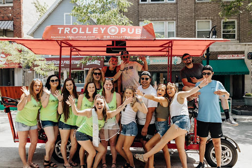 Read moreThis is a must do in Madison, even if you live here. The trolley has 14 seats, only 10 of which have to peddle. Get to the trolley first if you want a non-peddle seat, as they seem to fill up fast. Honestly, I would recommend sitting up front because you see a lot more, and talking to the driver and being the DJ is a blast. A friend and I did the mixer Trolley and had a blast meeting new people. For the mixer, you do stop at 3 locations where you can pick where to go (or just stay on the Trolley). Peddling is a workout, but even for my untrained butt, it was doable. You will sweat, but it is worth it. Wear reasonable casual clothes, but leave the flip flops at home. Someone will lose one, and the poor bartender will have to run for it. Great time, and the staff made the trip...