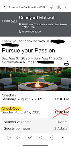 This is a Marriott hotel in NJ, no AC when it’s 80 degrees out seemed like a good enough reason to give some kind of discount on the price, which wasn’t cheap either, and when I asked him about that he said I would have to talk to management but he could give us complimentary breakfast tickets. I said great and asked if I could pick the ticket up in the morning as it was already 11pm at this point. He insisted I come down to the front desk to get it tonight and when asked why I couldn’t just get it in the morning, he offered no reason. Despite the inconvenience and how frustrating this whole experience was, I went down to get the breakfast ticket and when I got there, he said “I can come up to see if it’s working” which automatically makes me wonder why he insisted I come down in the first place.