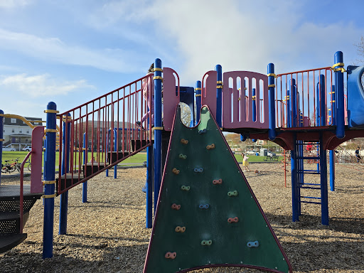 Fabulous playground! I wish the water had been on this warm day soon after Memorial Day, but it was a ton of fun anyway. Climbing web, climbing wall, good swings, great slides, ladders in places you might not expect, generally more creative than most playgrounds. Very well attended, with a big age range: 1-15ish. Lots of seating and a lovely park all around, with trees and shade close to the playground. Today there was a couple taking pictures after their wedding. One downside: the trash can was brimming and there was trash all around the south side. Being next to a big field without shrubbery between, it can also get...
