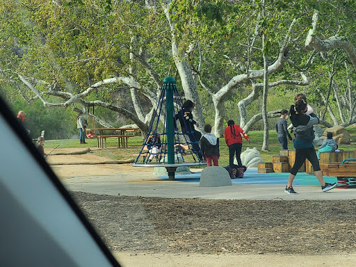 Needs swings. This is a nice park and is an achievement from the Malibu City Council to actually get this done. Nice cool place for kids and has a little exploring for the kids too. Tot lot is well maintained and clean. The merry go round is kinda bogus...it doesn't go 'round all that well by design. Boo!