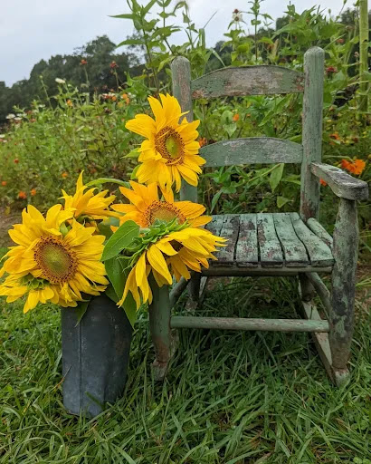 Read moreBeautiful garden! It's only $13 for a massive bouquet of cut-your-own flowers (mostly sunflowers, plus lots of wildflowers for your bouquet) with no entrance fee. I brought a big water bottle to transport my flowers home in my car's cupholder. They provide clippers and accept credit cards. There are tons of places to take pictures, and even cute props for kids to play with, like wheelbarrows, tractors, wagons, and chairs. They have chickens that you can feed (for free). There is a port-a-potty at the parking area. There are grass paths everywhere but it is fairly steep and rough...not a problem for walking, but it was hard to push a stroller. The employee was really nice and helpful.