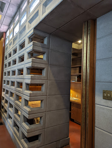 The tour of this house absolutely blew me away. I am very familiar with Frank Lloyd Wright's works as I once lived a few farms down from his Taliesin. This house is one of seven usonian automatics that was actually built, and I've wanted to see it for years. Since this house isn't all original furniture, we were able to sit on the furniture and talk with the tour group. The blocks used to build this plan are far more beautiful in person because they sparkle with Micah flakes, yet, the space remains warm and home-like and makes for a beautiful tour of...