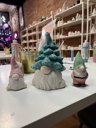 My mom and I brought my 3 kids (5,6,11), my grandma (96yrs old), and my little sister (with downsyndrome). The staff was SO Friendly, helpful, informative, and accommodating. We all painted 2 premade sculptures/statues/containers. MANY different options to choose from, prices vary on size, Lots of colors to paint with or mix your own, Even different finishing glazes but you probably need to ask about the different glazes. They had Just ordered a different variety when I finished mine. Don't worry if you don't finish the same day, just let them know when you can make it back and they will have it waiting for you! It took me a total of 3 visits to finish my christmas tree gnome. I Am kinda picky and the colors had to be Just right, mind you lol. I'm sure anyone else could get it done in 1 visit if they only had to focus on themselves but it gives you an excuse to getaway without the kids for an hr or 2 and it's...