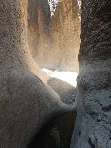 Well, back four months later without a ladder 😞 but you'll see in my additional photo, I did make it over the first obstacle by bracing myself between both walls. You'll have to be at least six feet tall to do this. The next obstacle you'll need to jump about three feet into a wall slanted about 15 degrees with shoes with good traction. The third tinaja you'll need to jam both your hands against opposite walls and walk across like you're in a door jam working your way up. Still with a good sized drop that I didn't have ropes to do and so went back. Make sure have people with you who can help you out of the water if you fall in because you can't do it on your...