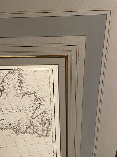 Read moreRecently we had 3 large antique maps framed and matted by Norton’s in St. Louis. Mary and Doug designed a French mat, with inked lines of gold and black, a muted watercolour panel, and gold inset offsetting the double mat. The results are exquisite. During the pandemic we had had these same maps framed in Alabama where we now live. Though they were very professionally done, the wide monochromatic matting overwhelmed the maps. The Norton’s had framed for us years ago when we lived in St. Louis, so we decided to take these maps to them. The photos cannot really show how beautiful they are now; the matting enhances the maps—it is as lovely as they are. It was definitely worth the 1000 mile round trip from Alabama to St Louis...