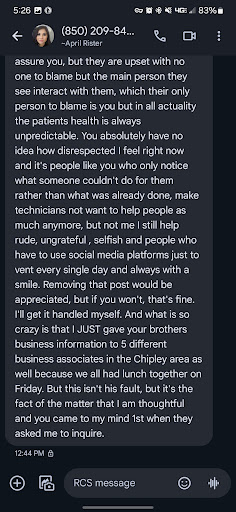 After several more days of failed communication and waiting, I post a review on Facebook, which leads to me learning that the technician had gone on a work trip to Las Vegas without informing me or my friend, who was also waiting on a separate phone repair.